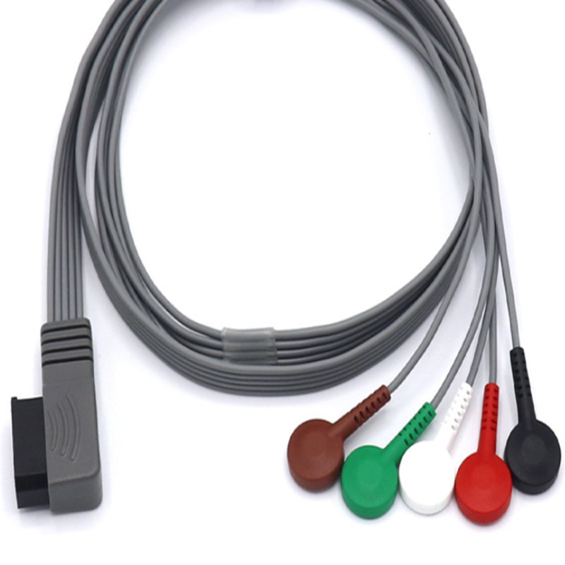 * Cavo ECG PH Holter Recorder, 5 conducenti, AHA, Snap, compatibile, 2,5m