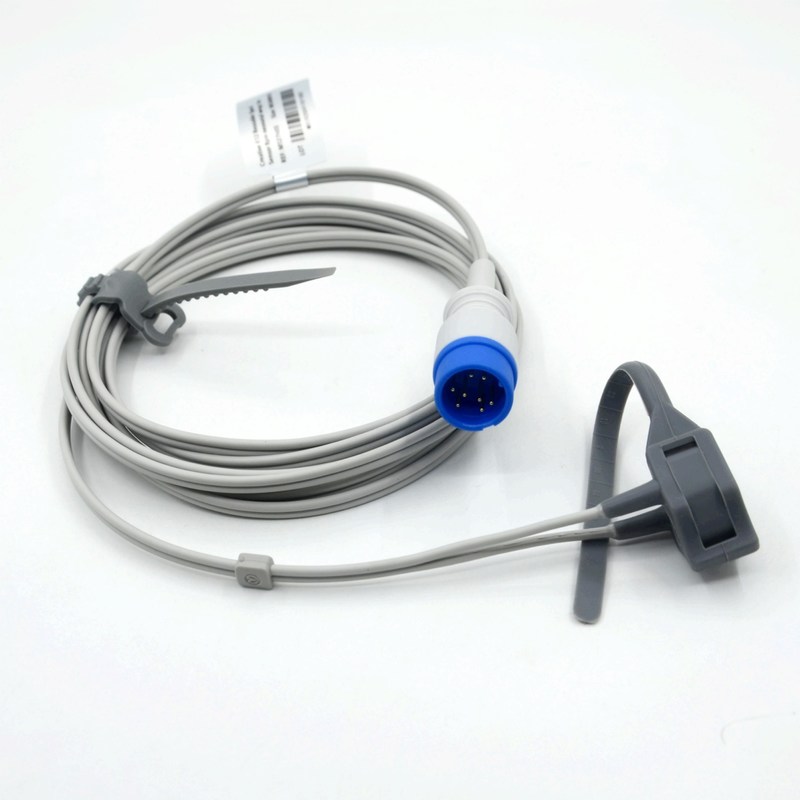 Il cavo sensore Spo2 è un dispositivo medico utilizzato per misurare i livelli di saturazione di ossigeno nel sangue di un paziente.